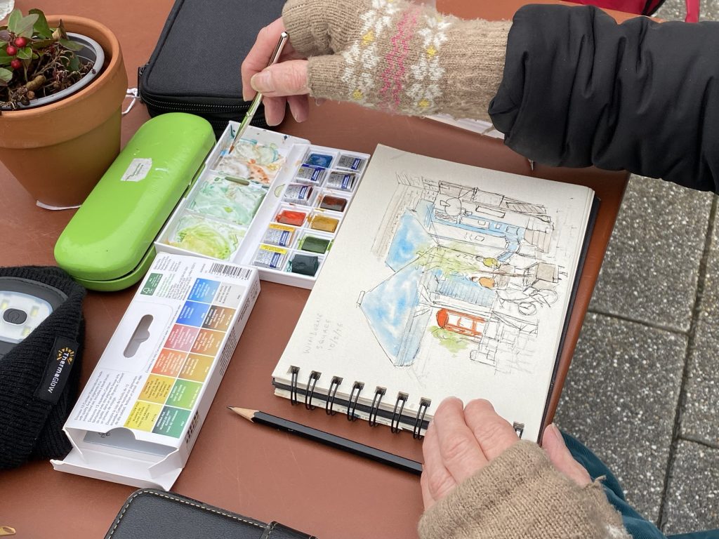 We all hit the streets and sketched what we saw – and of course everyone’s treatments were amazingly different! Lots of happy chatting, coffee, light bites and great company. (Oh, and rain). You can view the Instagram reel here.